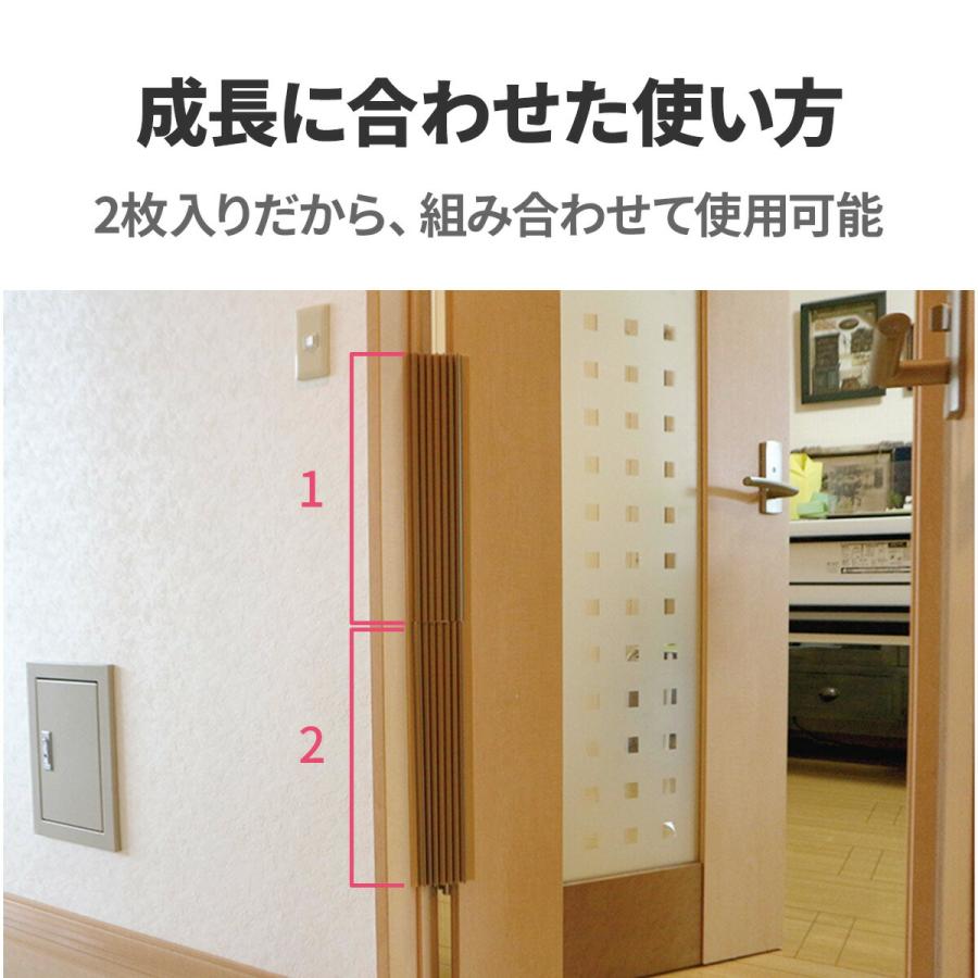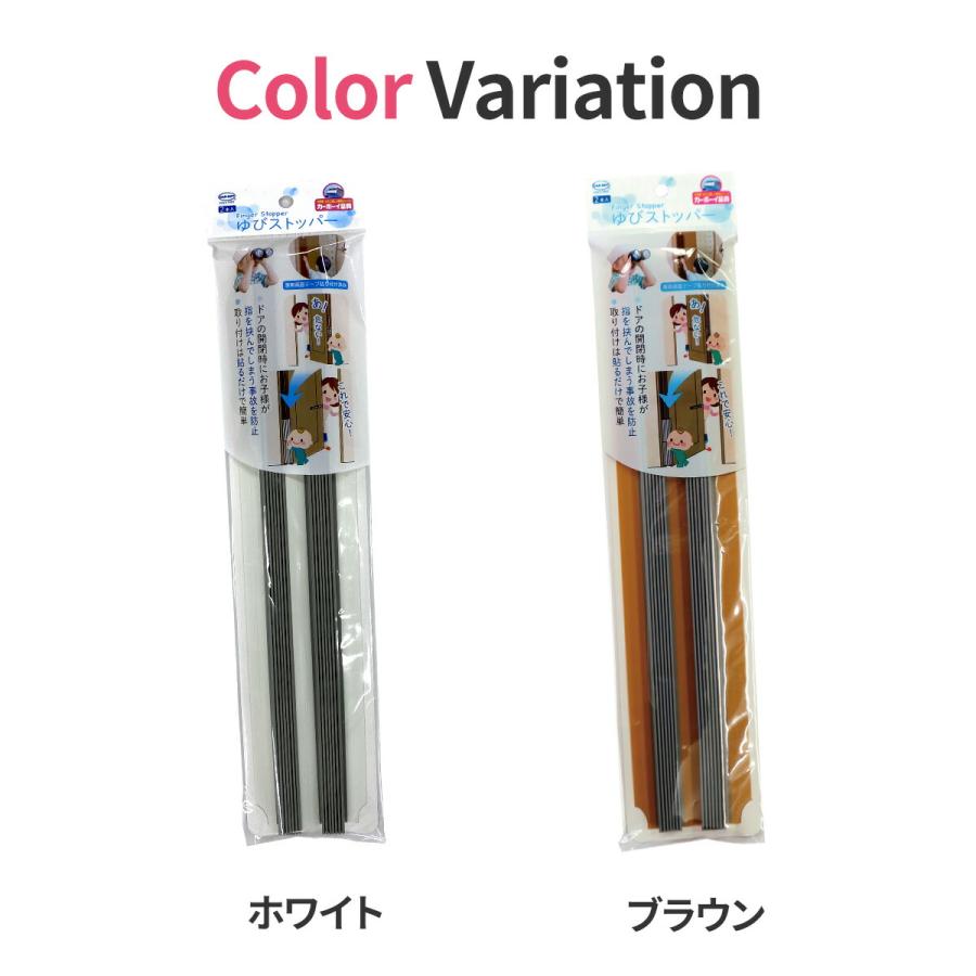 身近で意外にも多い、指はさみの事故。時に、小さな怪我で済まず、指を切断までしないといけないこともある、怖い事故です。<br>気づいた時に、指をはさむ「前に」できる対策、ゆびストッパー。<br>ドアなどに取り付けられ、じゃばら状になっているので、開閉時に伸縮して隙間をカバーしてくれます。<br>取り付けも非常に簡単で、専用の両面テープで貼り付けるだけ。成長や、生活スタイルに合わせて、複数本つなぎ合わせての使用も可能です。