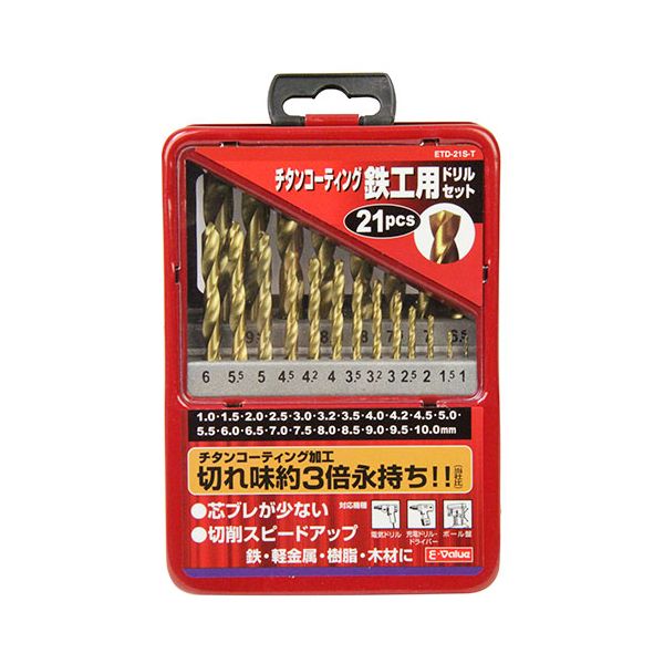 E-value 電気ドリル、充電ドリルドライバー、ボール盤対応・チタンドリルセット No.ETD-21ST