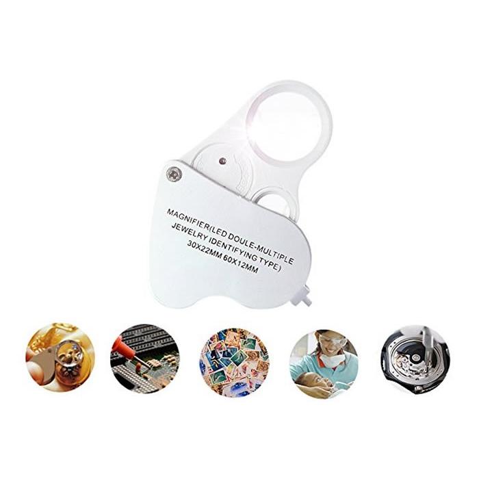 ・宝石(ジュエリー)、切手、紙幣、骨董品などの鑑定にご利用頂けます。・植物や昆虫などの観察にも利用可能です。・小さく軽量なのでお手軽に持ち運び可能です。・LEDライト付きなので暗所でも利用できます。倍率 30倍:径22mm 60倍:径12mm本体寸法:5x3x3.5cm重量:31g色:シルバー※送料について代金引換以外は送料無料です。代金引換の場合は通常の送料+代引手数料が必要です。