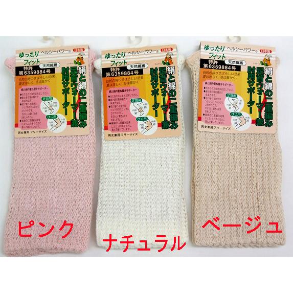 *天然素材の綿と絹を使用した、ずり落ちにくい、締め付けないゆったりフィットの
