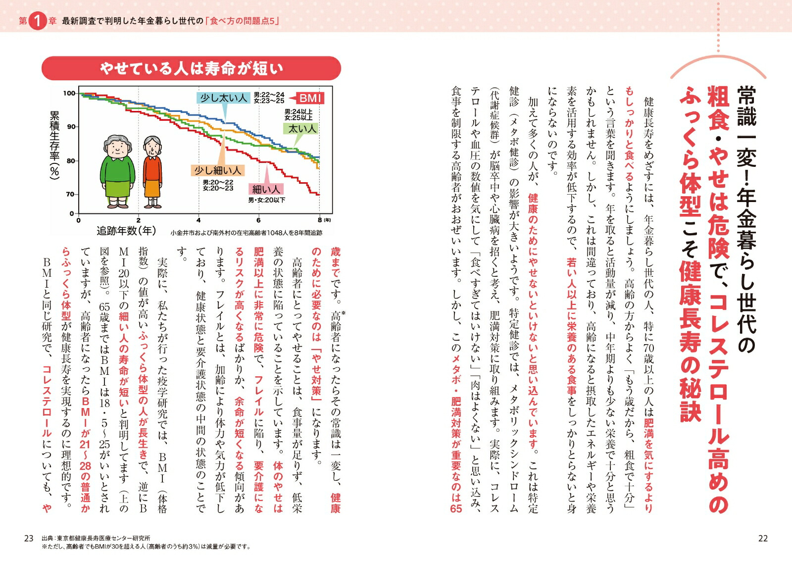 年金暮らしになると心配な「お金」と「健康」。そんな悩みを解消するために、年収が少なくても元気にイキイキと長生きできるご飯の食べ方のコツをご紹介します。シニアになると、過栄養を防ぐ中高年のメタボ対策の食事から一転し、栄養不足を防ぐことが最重要です。本書では、お金をかけずに、できるだけ簡単に栄養をとるには、何を、どれだけ食べればいいのかを女子栄養大学の教授がわかりやすく解説しています。親の食事や体力が心配という方にも、贈り物としておすすめです。【巻頭】年金暮らし世代が知らぬまに続けている「間違いだらけの食べ方」総チェック【第1章】糖尿病・高血圧・慢性腎臓病・骨粗鬆症から認知症・うつ・要介護まで招き寿命も短縮!最新調査で判明した年金暮らし世代の「食べ方の問題点5」【第2章】老いるも若返るも食べ方がすべて!年金暮らし世代の食べ方の問題点を一掃し健康長寿を実現する「食べ方の基本原則と解決策5」【第3章】栄養計算しなくてOK!意識するだけで栄養バランスが自然と整う!すごく便利でシンプルな食べ方「さあ、にぎやかいただく」【祭4章】安い食費で手間ひまかけずに「さあ、にぎやかいただく」を実現する買い物と食べ方のコツ【第5章】7点以上とるのは実は簡単!「さあ、にぎやかいただく」が実現できるシンプルな10点満点1週間献立【付録シート】冷蔵庫に貼って使いたい!「さあ、にぎやかいただく」チェックシート+1ヵ月栄養満点カレンダー
