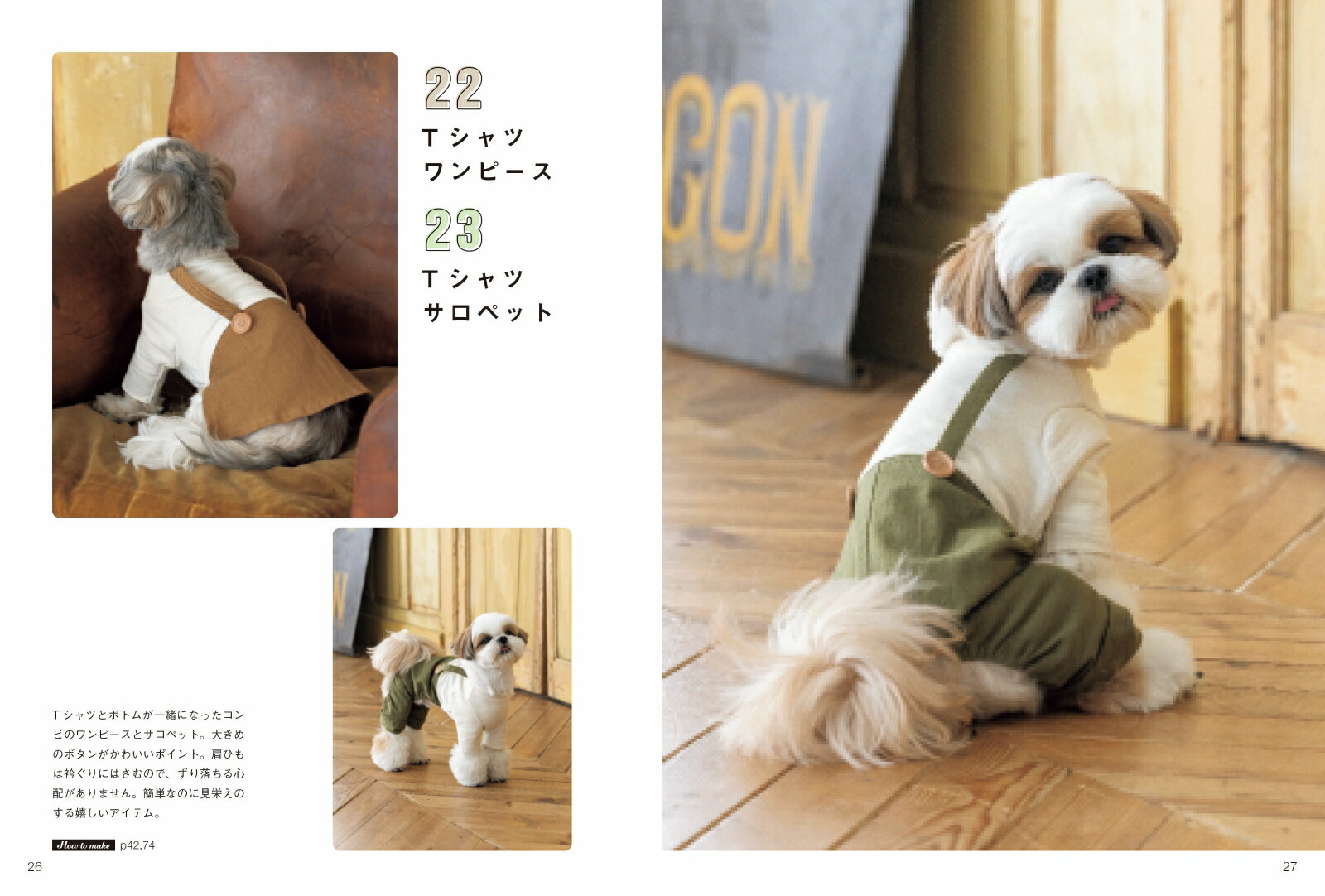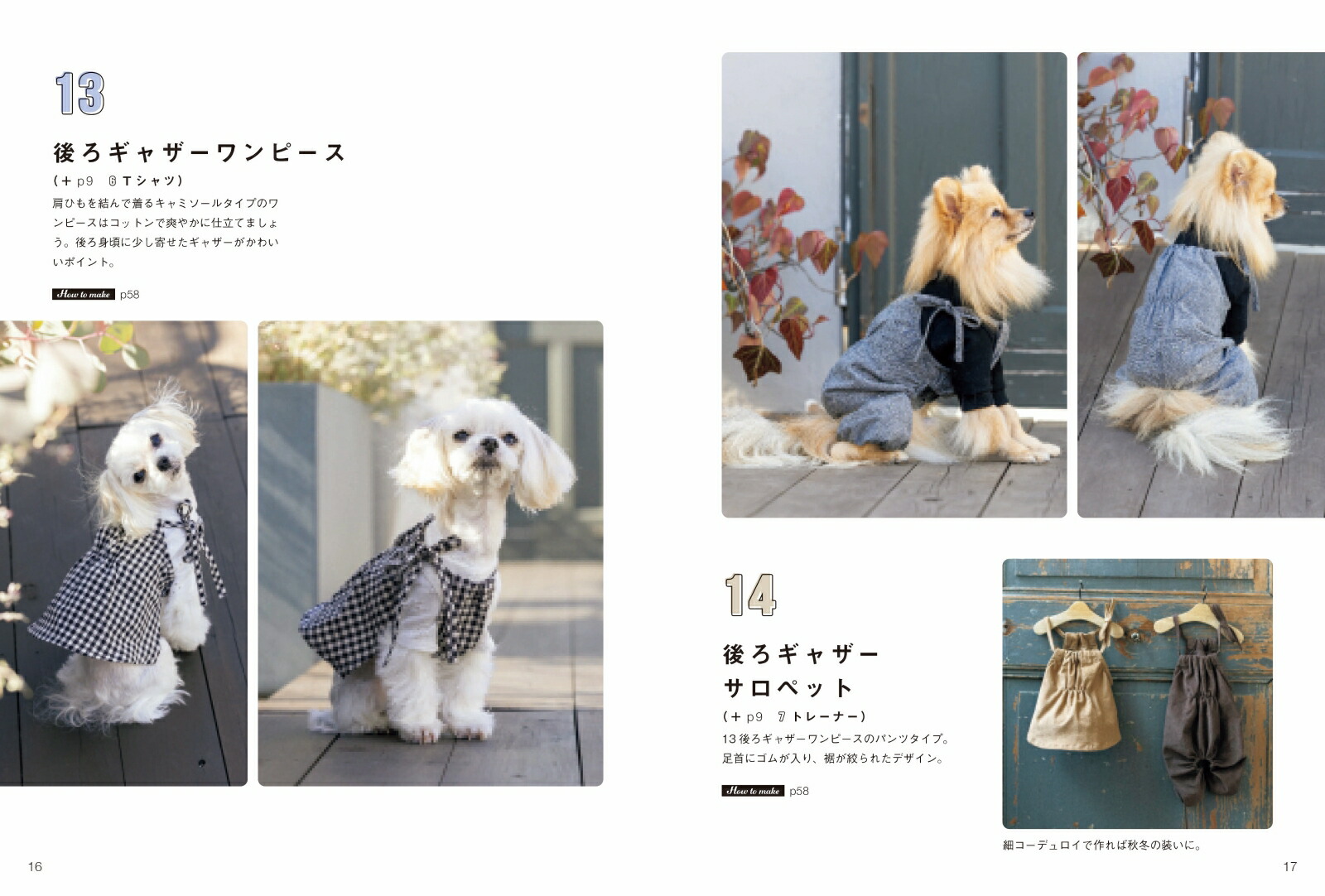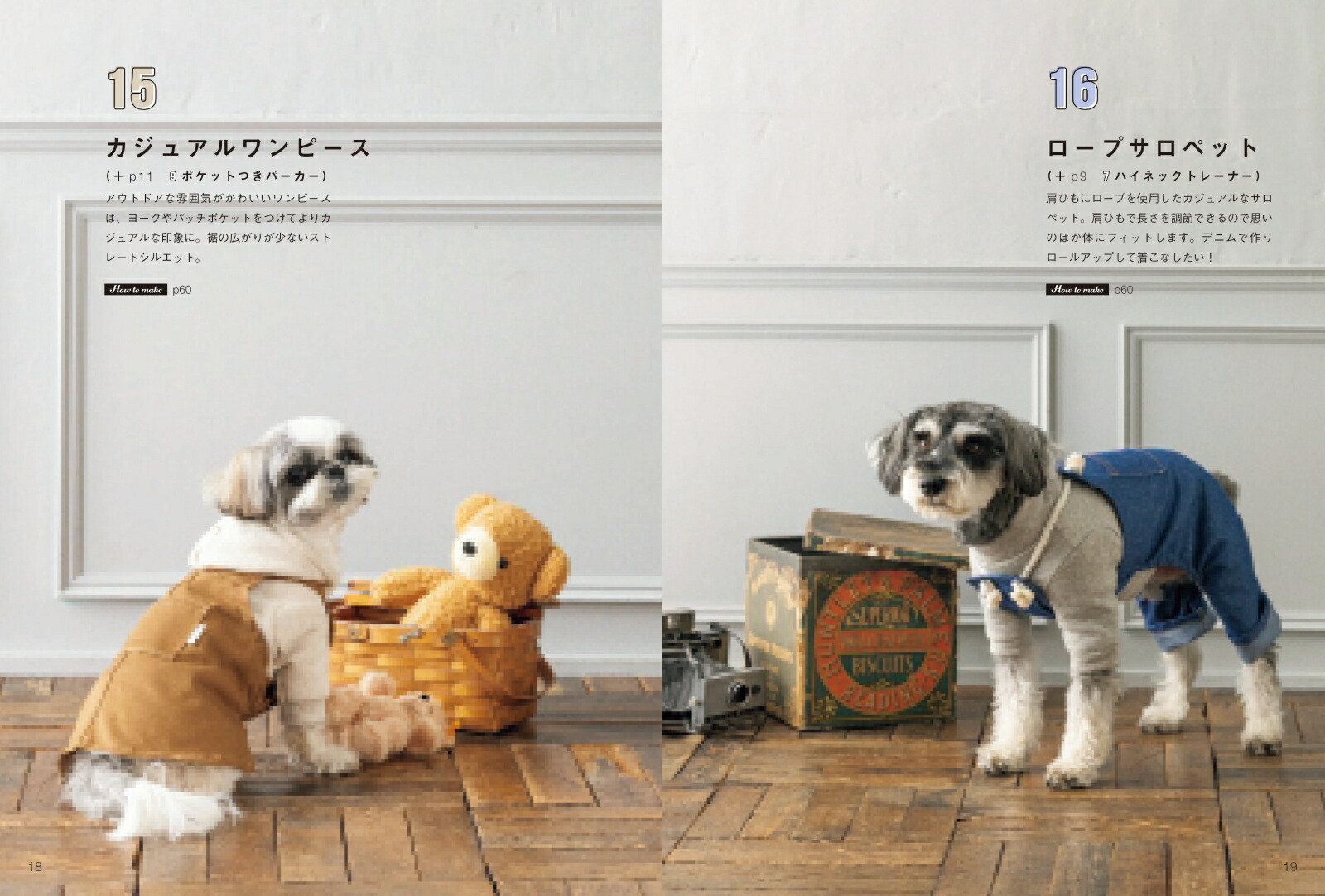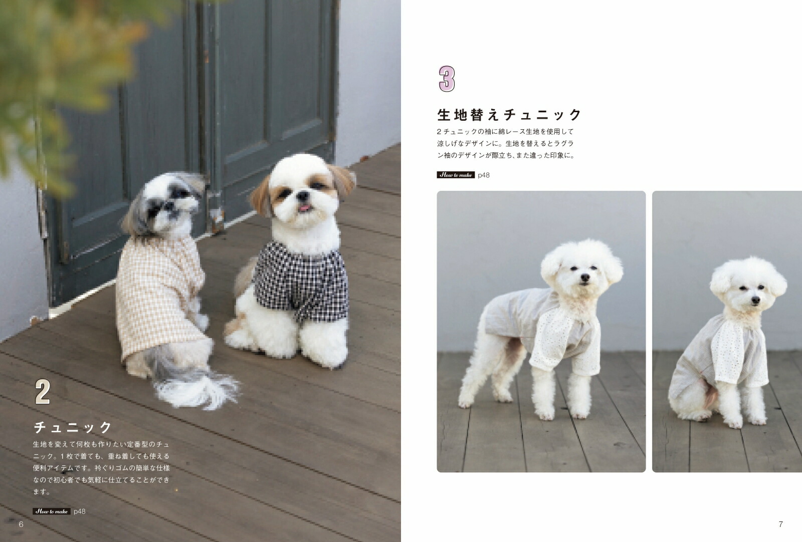 初心者にもおすすめ簡単アイテムチュニックは縫う工程が少なく、衿ぐりもゴムで始末するので、初心者でも挑戦しやすいアイテムです。1枚で着ても、重ね着しても使える便利アイテム!愛犬とお揃いに!ポケットつきのパーカーは市販の大人服のような完成度なので、飼い主とお揃いにしやすいアイテムです。キュートなわんこ服キュートなエプロンワンピースはチュニックと重ね着しています。腰ひもで結ぶタイプなので、様々な犬種にも対応できます。男の子女の子どちらにもおすすめパーカーとボトムがつながった1枚着るだけきまる便利アイテム。男の子用のパンツタイプと、女の子用のワンピースタイプを紹介しています。更新日:2025年09月17日