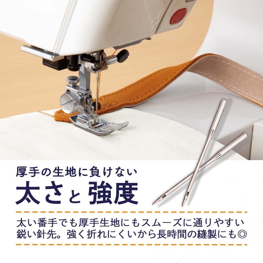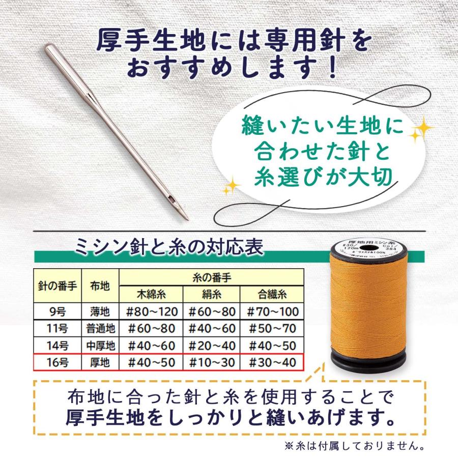 \厚手の生地には専用の針を!/・デニムや革製品などの縫製に最適◎・固い生地や太い番手にもスムーズに針が通りやすい!・強く折れにくいので、長時間の縫製にも◎【針のサイズ】16号【セット内容】5本入り収納ケース付き【生産国】日本
