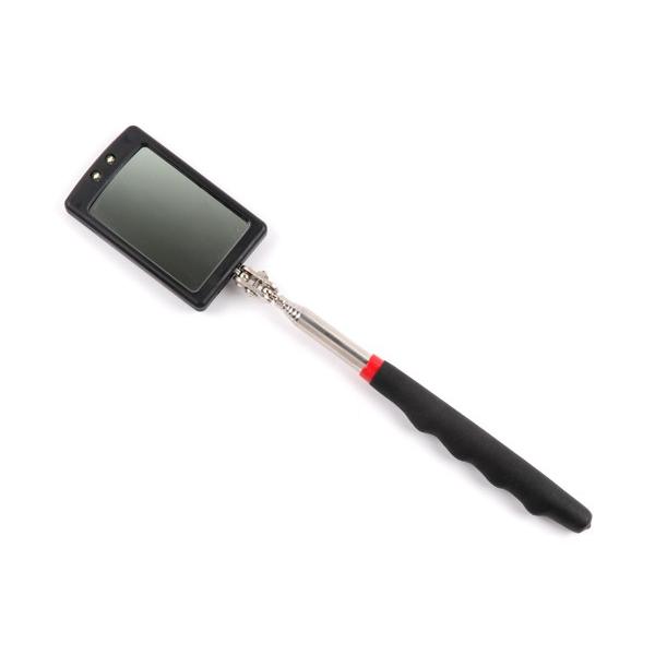 鏡部サイズ:50×80mm伸縮時サイズ:290〜876mmLED数:2個電池:CR2032×2個(本体装着済み)LEDアンテナ式点検鏡 ライト付 LED検査鏡 伸縮式点検鏡ライト付 インスペクションミラー LEDライト付