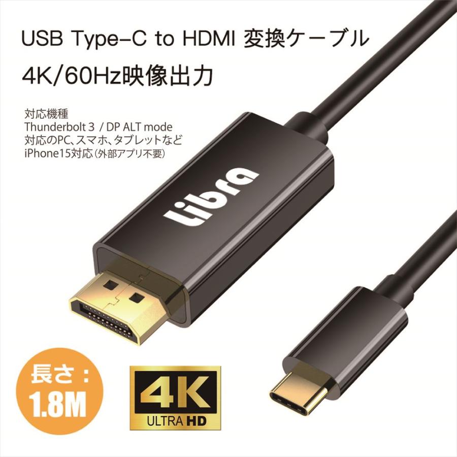 type-c HDMI 変換ケーブル typec タイプC 出力 ケーブル 4K 2K 高画質 高解像度 ミラーリングケーブル 変換 Mac pro 1.8m TYPE-C スマートフォン スマホ タブレット DP ALTモード対応