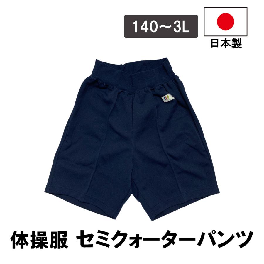 日本製 セミクォーターパンツ 紺 ネイビー 男女兼用 体操服 短パン 半ズボン 小学生 中学生 高校生 体育