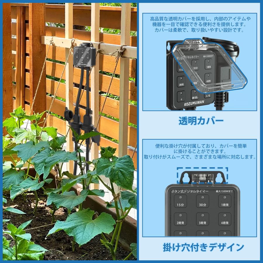 ■本体 材質:ポリカーボネイト■カ ラ ー:ブラック■寸 法:W73×H90×D35mm(突起物は除く本体寸法)■重 量:約251g■定格 電圧:AC100V、50/60Hz■最大定格入力電流:15A(1500W)■消? 電力:0.5W以下■プラグ仕様:2Pオス(絶縁キャップ付きスイングプラグ)・2Pメス■タイマー設定誤差:±2 分以下 /1ヵ月■使用温度範囲:-5℃〜+45℃■使用 環境:屋内屋外(水没の場所で使用しないでください)