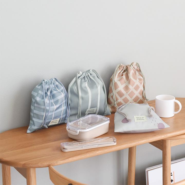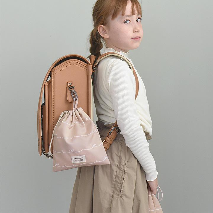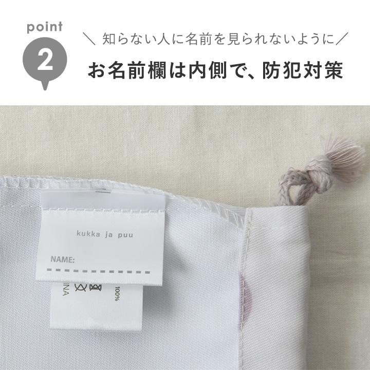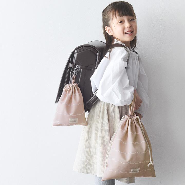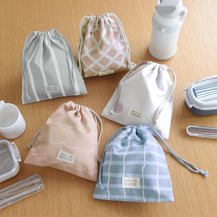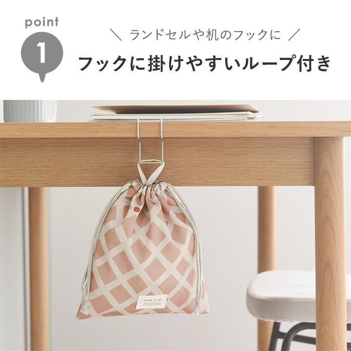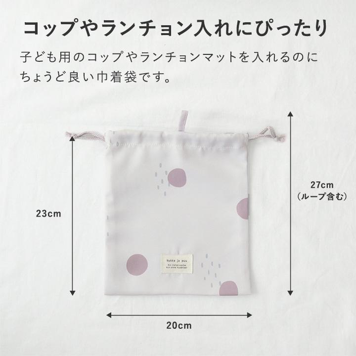 子供用のコップやランチョンマットを入れる巾着袋。シンプルな大人かわいい雰囲気で、おしゃれ感もある北欧テキスタイル風。保育園や幼稚園、小学校まで長く使っていただけます。