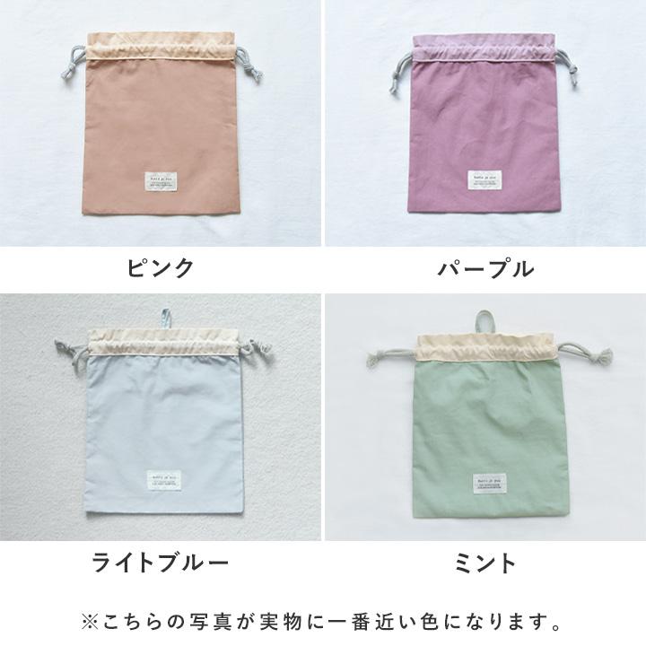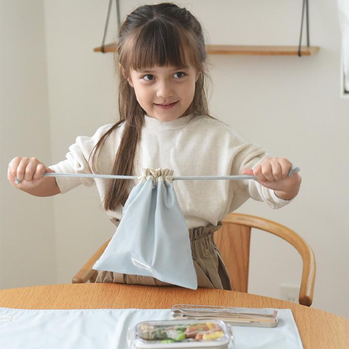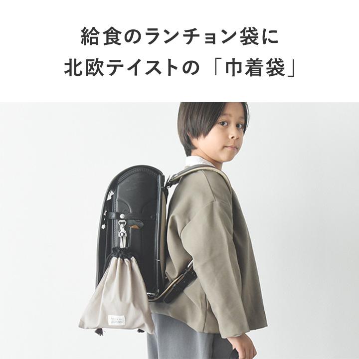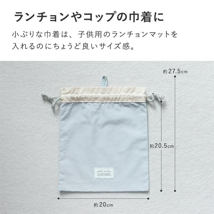 コップやランチョンマットを入れるのにちょうどいいサイズ感の巾着袋。シンプルデザインだから、入園・入学から高学年まで幅広くお使いいただけます。