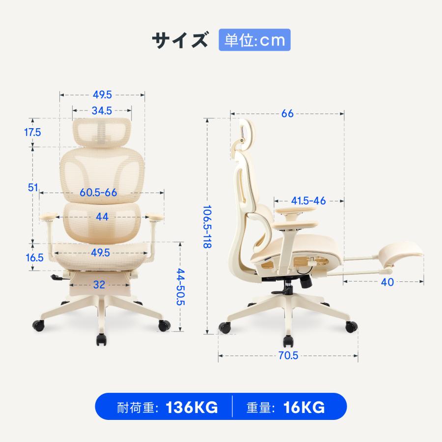 ・サイズ:幅60.5cm×奥行66m×高さ106.5~118cm(座面高さ44~50.5cm)