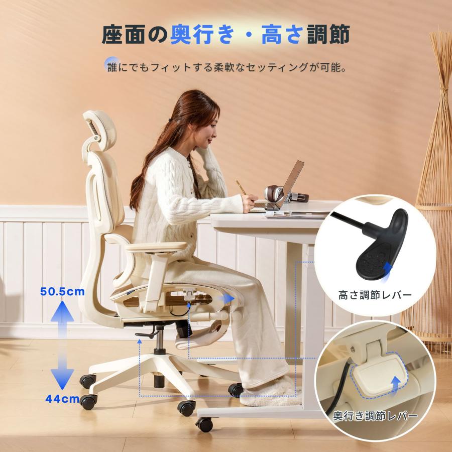 ・全メッシュで快適な座り心地:座面から背もたれまでフルメッシュ仕様で通気性抜群。長時間座っても蒸れにくく、夏は涼しく冬も快適に過ごせます。クッション性のあるメッシュ素材で、快適さとサポート力を両立。