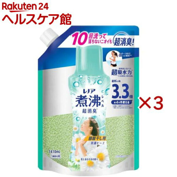 洗濯用芳香剤 衣類用>レノア 煮沸レベル消臭 抗菌ビーズ 部屋干し 花とおひさまの香り 詰め替え (1410mL×3セット)