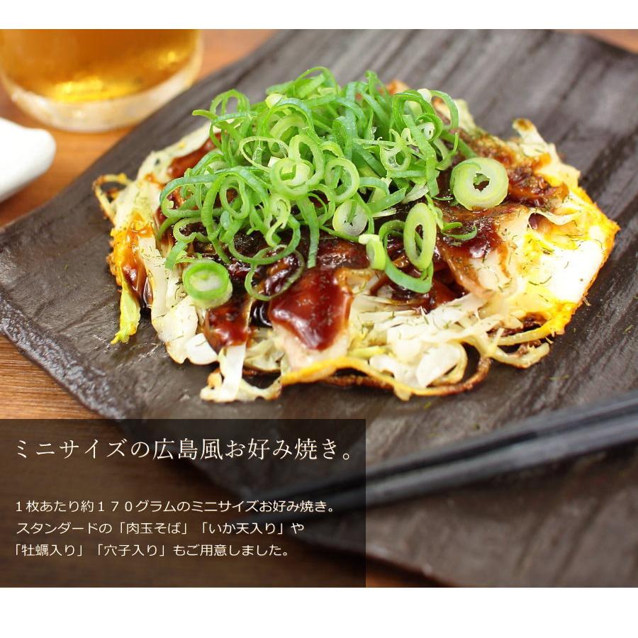 1枚約170グラムのミニサイズで5枚セットでお届けします。ちょっとした食事や、おかずの一品に。晩酌のおともや、小腹がすいたときなど、手軽に広島の味をお楽しみください。