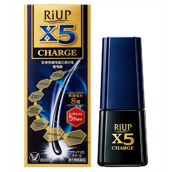 ★薬剤師による適正使用確認後の発送★【10倍ポイント進呈】1本につき770円相当+各種上乗せPayPayが獲得できます!【第1類医薬品】市販薬 リアップX5チャージは、既に始まってしまった脱毛の進行を食い止め、さらに発毛、育毛の効果を併せ持つ医薬品です。日本で唯一、発毛効果が認められた製品です。リアップX5は従来のリアップ(1%ミノキシジル製剤)を、さらに有効性を高める目的で、5倍の高濃度製剤(5%)として開発されました。ミノキシジルはすでに世界90ヵ国以上で承認されている効果の高い男性用発毛剤です。1本で約1ヶ月分の使用量が入っています。養毛剤 <大正製薬>【60ml(約1ヶ月分)】Riup X5 CHARGE