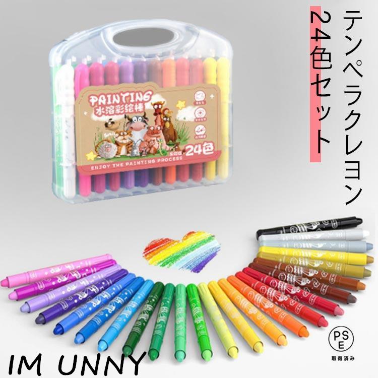 繰り出し式 24本セット 24色 手が汚れない 速乾 安全 洗える マーカーペン型 テンペラスティック クレヨン 水性 安全 落ちやすい カラーペン