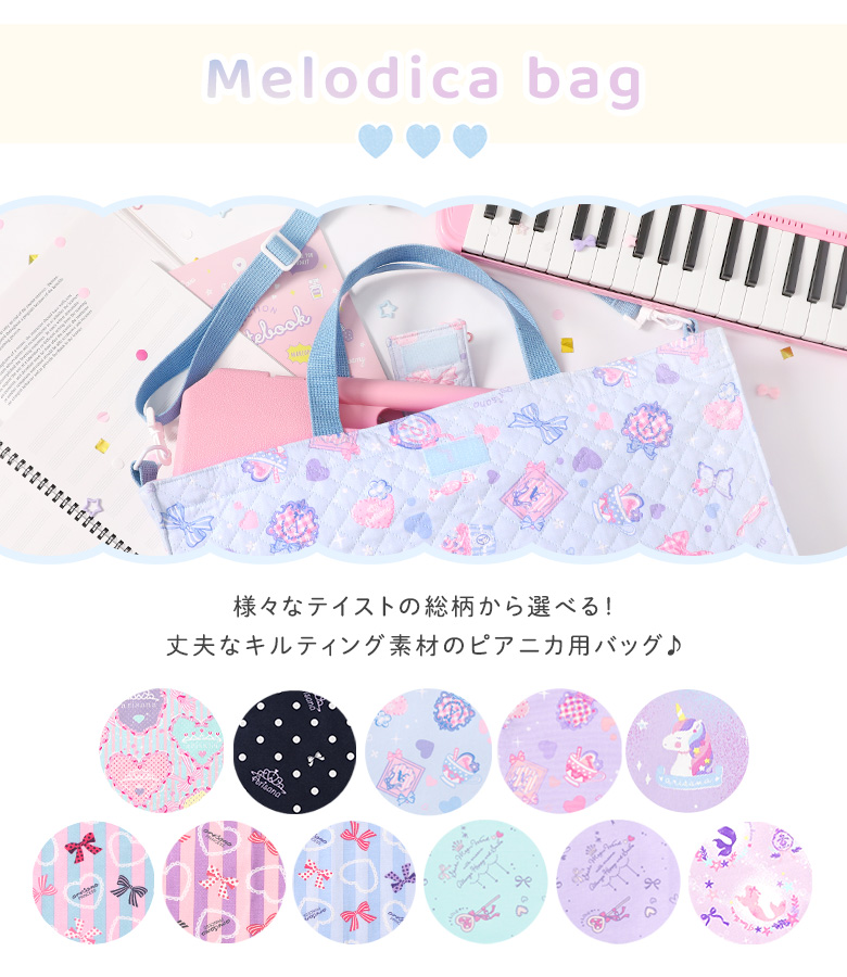 [ ピアニカケース 鍵盤ハーモニカケース バッグ メロディオン ピアニカバッグ 肩掛け リボン ハート ストライプ ドット ピンク ネイビー ラベンダー パープル 水色 鍵盤ハーモニカバッグ 袋 ][sweet_arisana]
