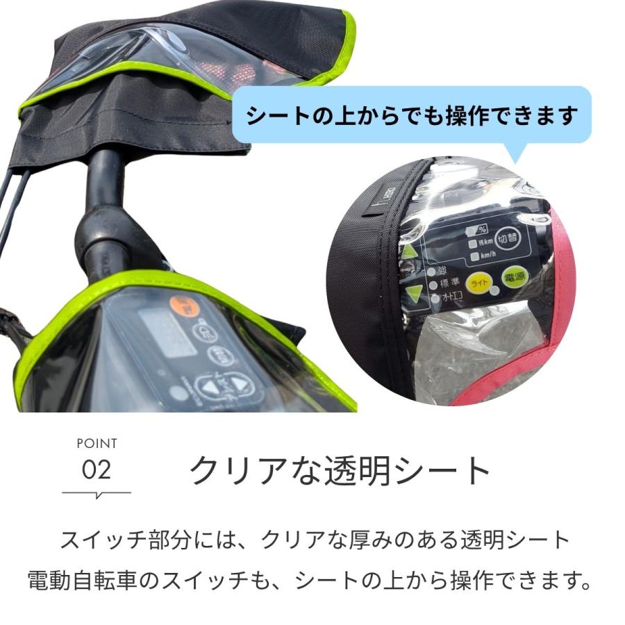 電動自転車 のスイッチは透明ビニールシートの上から操作可能です。