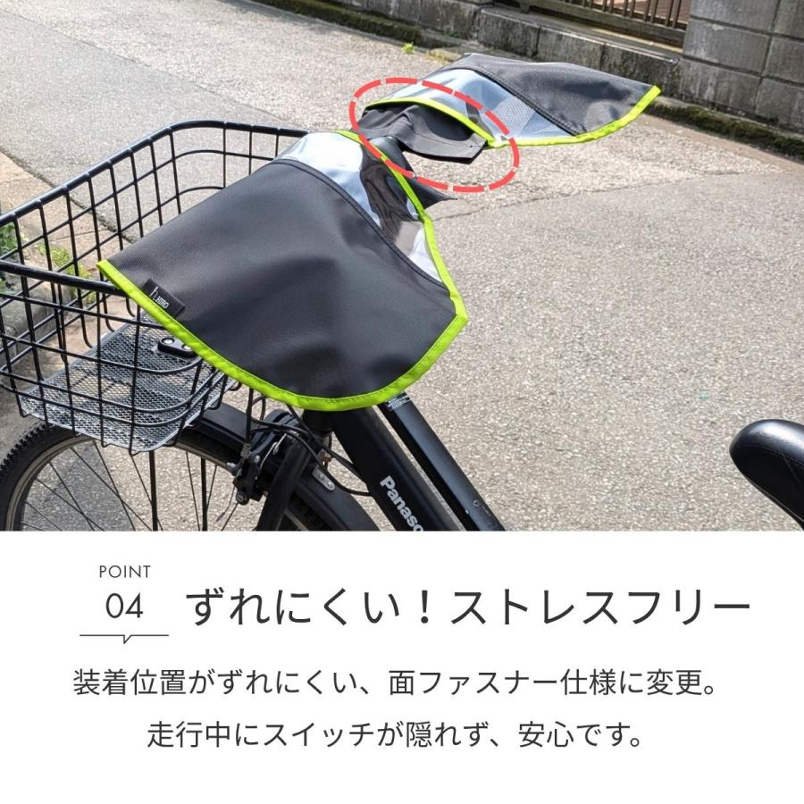 手元のスイッチやベル、ハンドルロックなどもカバーの中で操作できます。