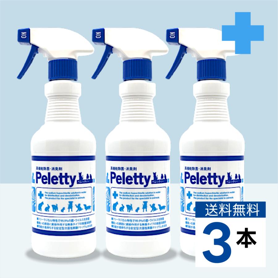 「ペレッティー」は、従来製剤のデメリットを改善し、ペットが舐めても問題のない安全レベルの動物病院業務用除菌・消臭製剤として開発されました。