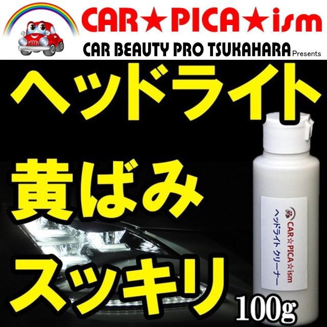 ヘッドライトクリーナー100g【決定版 即効一発仕上げ 激安 業務用 プロ仕様 洗車用品 カーケア用品 簡単施工 ヘッドライト バイク スクリーン ヘルメット シールド 黄ばみ くすみ 曇り くもり 白濁 黄ばみ取り ナノ 親水】経年劣化した樹脂製ヘッドライトレンズの黄ばみを技術も力も要らず、たった5分の簡単作業でスッキリ分解除去!