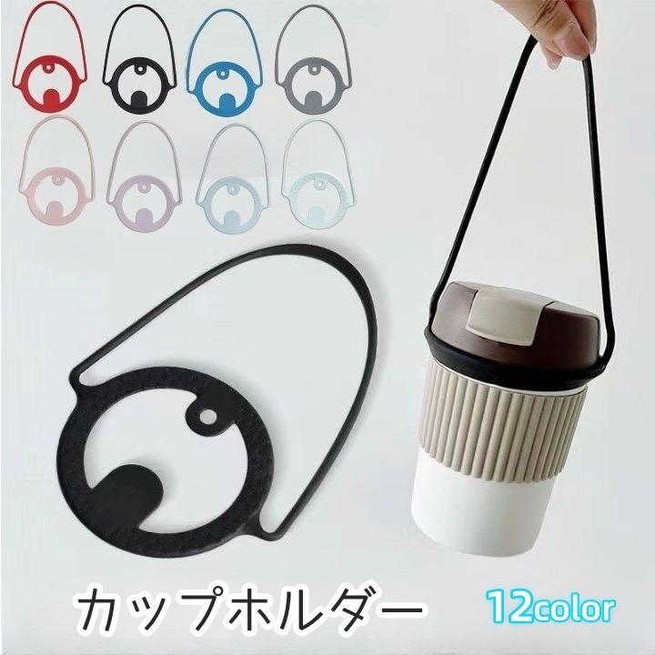 カップホルダー ドリンクホルダー コップ 手提げ ストラップ 紐 伸縮性 伸びる アウトドア 持ち運び 単色 シンプル