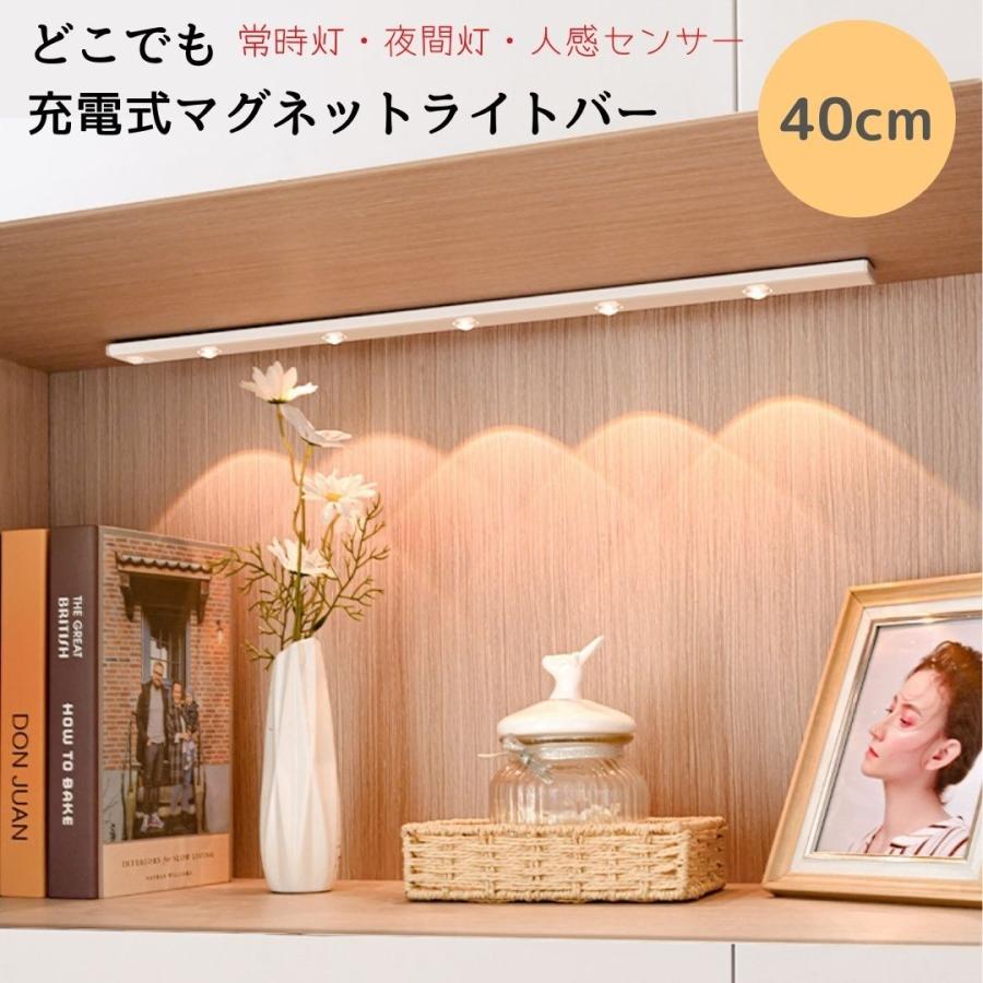 人感 センサーライトバー 40cm どこでも充電式 LED 常時点灯 人感 ライトバー 無段階調光 配線不要 持ち運び可能 マグネット付 おしゃれ 間接照明 fy048-40