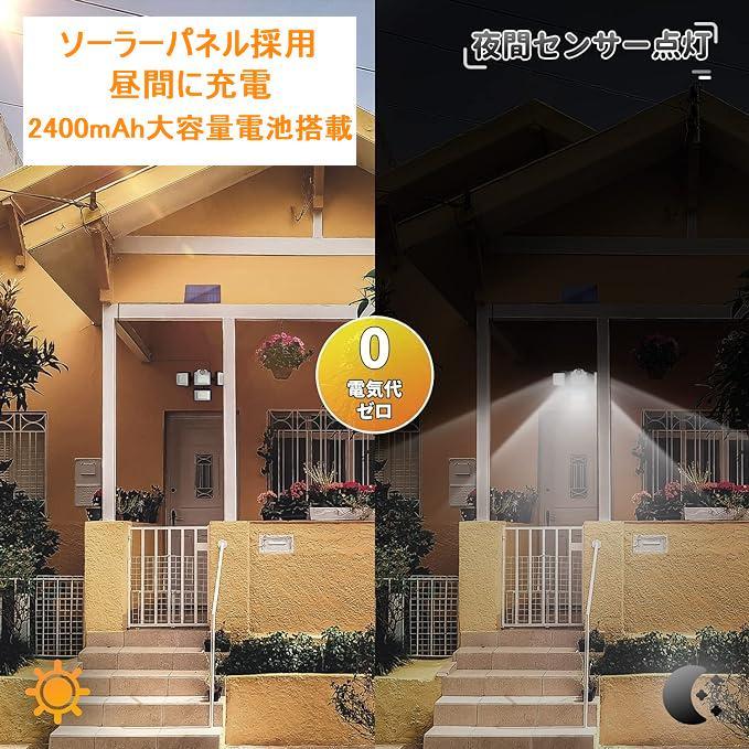 【日中充電&夜間自動照明】アップグレードされた高強度単結晶シリコン太陽電池パネルは、太陽光の35%を電気エネルギーに変換することができます。内蔵の大容量2400mAhバッテリーは、長い動作時間をもたらします。