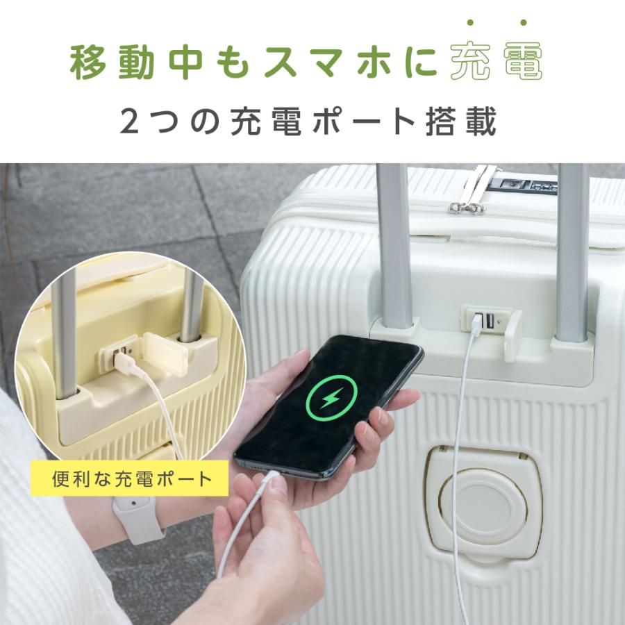 【usbポート・カップホルダー・フック付き】内側にお手持ちのモバイルバッテリーを接続すれば簡単に充電できます。背面のカップホルダーのデザインは両手を解放します。水筒、ティーカップ、傘など手軽に置けて、旅行の楽しさが広がります!隠しフックデザインはちょっとした袋を掛けることができ、すごく便利です。旅行は荷物が増えがちですが、手持ちから開放してくれます。