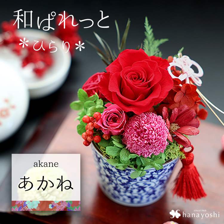 枯れないお花プリザーブドフラワーの和風アレンジメントです。