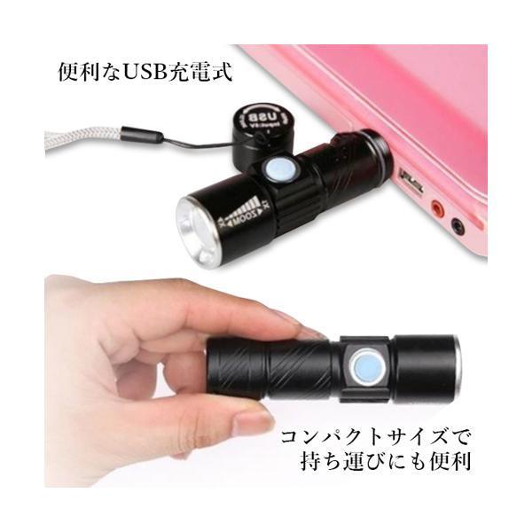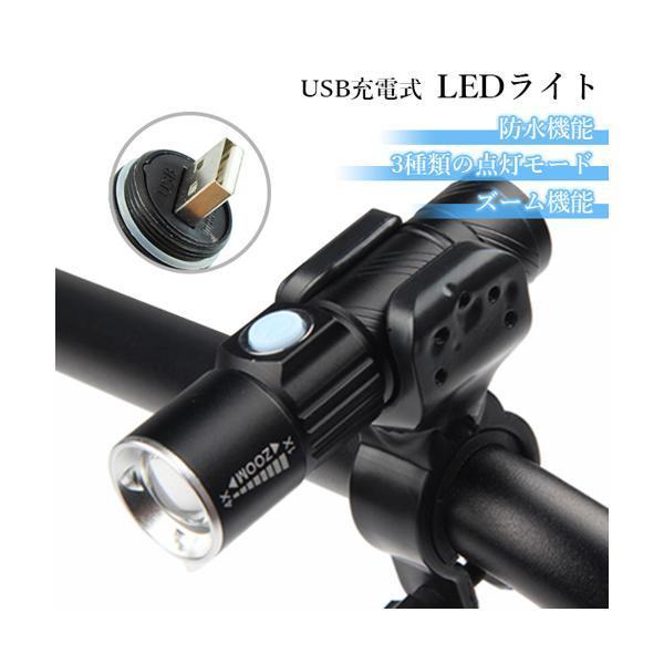 自転車 ライト LEDライト USB 充電式 明るい 懐中電灯 コンパクト ハンドライト ブラック