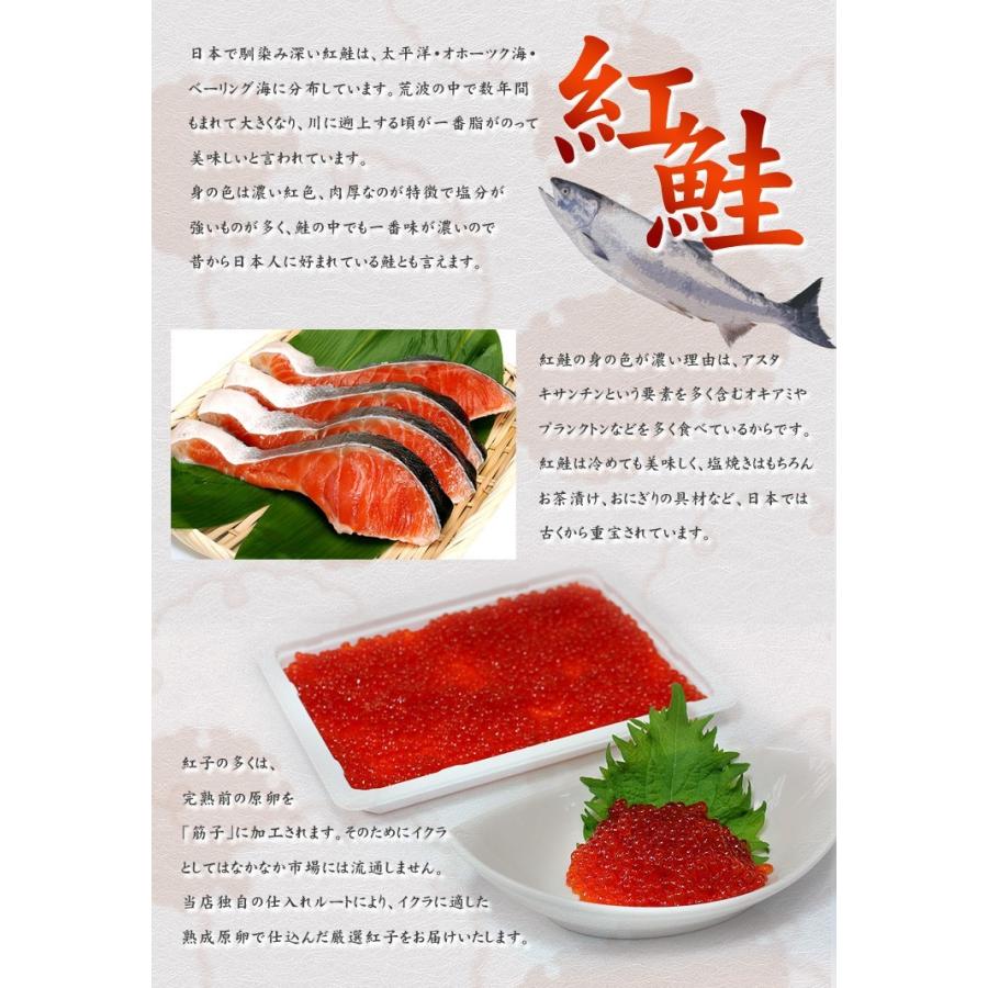 ■産地・原材料:べにさけの卵(アメリカ合衆国産)、粉末水あめ、しょうゆ、米発酵調味料、食塩、かつおぶしエキス、水あめ、オリゴ糖/調味料(有機酸等)、(一部に小麦・いくら・大豆を含む)