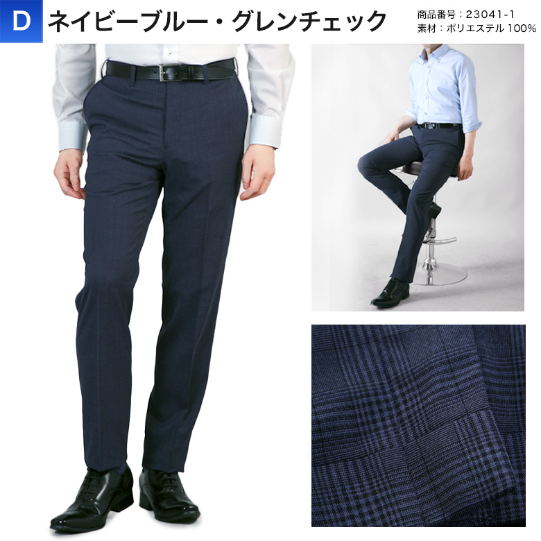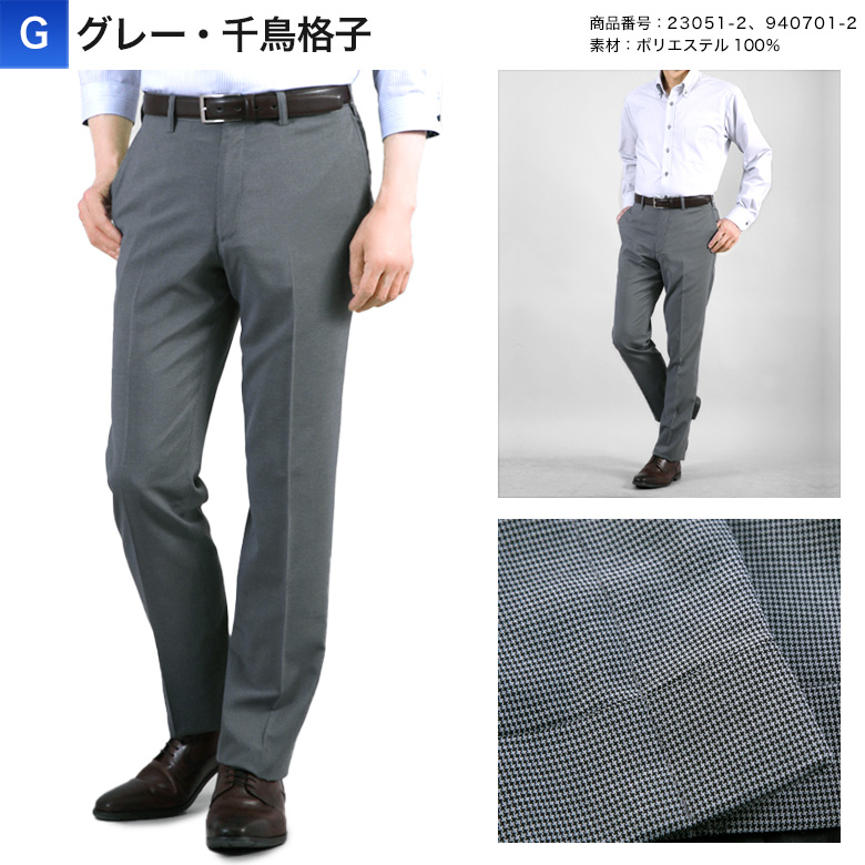 ストレッチ素材で快適 【ノータックスリムスラックス】股上浅めでノータック仕様により、すっきりとした印象を与え、どんなビジネスシーンにもフィットします。ご家庭の洗濯機で洗えるのでお手入れが簡単です。ストレッチ素材で立ったり座ったりの動作が楽々。ツッパリ感が少なく、履き心地が優れたスタイリッシュなスラックスです。オフィスだけでなく、カジュアルなシーンにも対応します。サラリとした肌ざわりで、春夏秋のスリーシーズンにぴったりの涼しさを提供します。