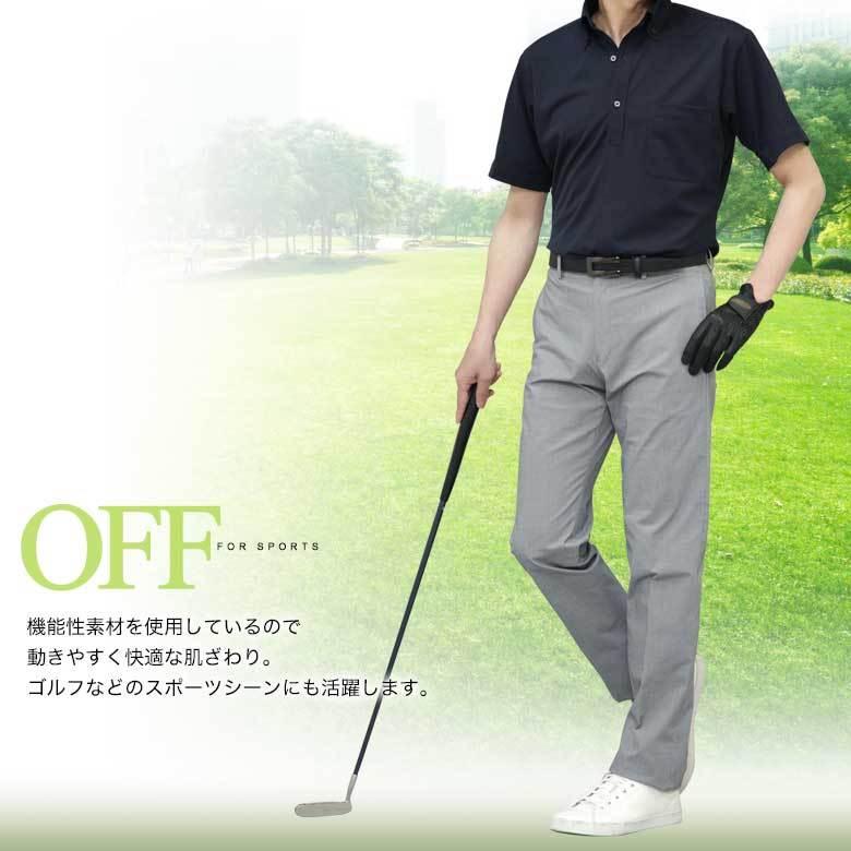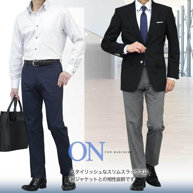 股上浅め・ノータックで脚長シルエット。ポロシャツ、濃紺などのジャケットと相性が良く、オンオフ使い回せるビジカジスタイルに重宝します。