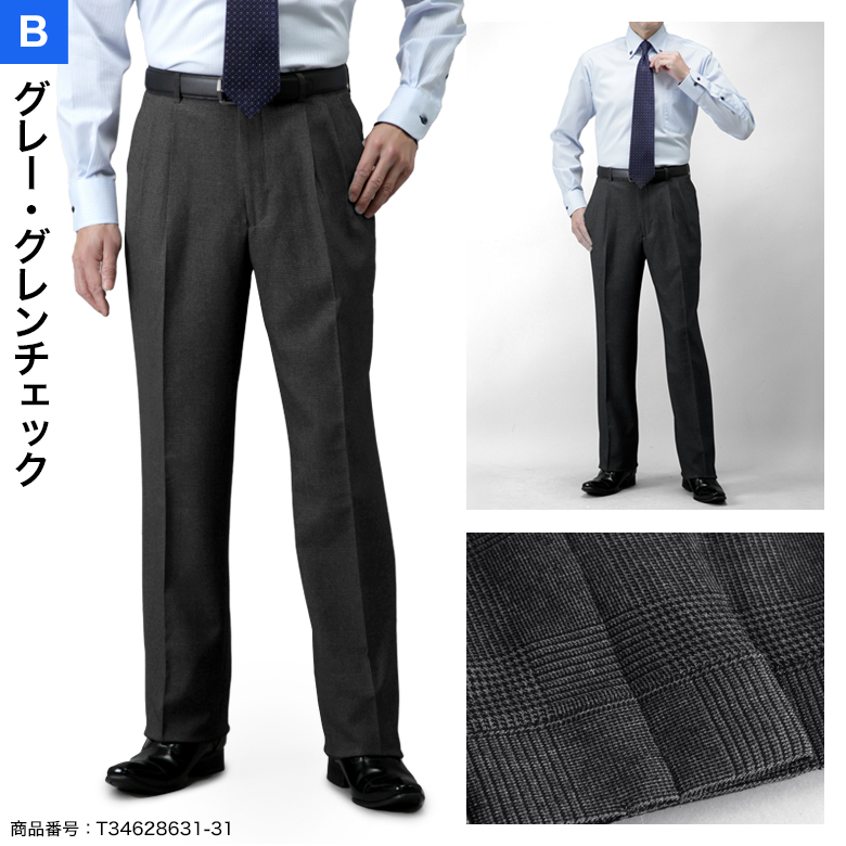 ツータックでややゆとりのあるレギュラーシルエット。ベーシックなサイジングで履き心地が抜群です。ご家庭で洗えるウォッシャブルタイプ。いつも清潔に保てます。洗った後でも折り目のとれにくいプリーツ仕様でお手入れが簡単です。肉厚でキメの細かい綾織のポリエステル100%素材を使用。まるでウールのようなソフトな生地感を実現しました。年代を問わず着られる一着です。