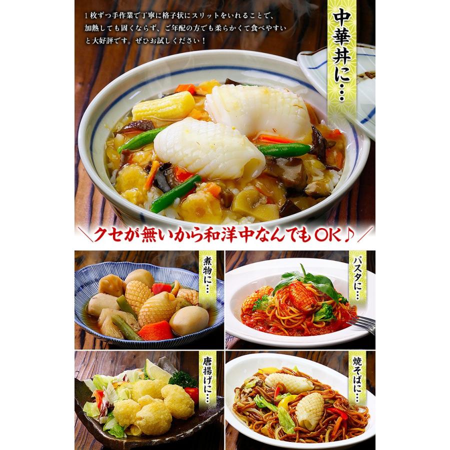 商品のポイント:近年、世界的にイカの不漁が続いていており、相場も軒並み高騰中ですが、イカ好きの方に朗報です!本日ご紹介するのはプロ御用達の中華食材の定番で、通称「松笠イカ」と呼ばれる紋甲イカを食べやすくカットしたものです。使用する紋甲イカの原料は一級品の鮮度にこだわり、1枚ずつ手作業で丁寧に格子状にスリットをいれることで、加熱しても固くならず、ご年配の方でも柔らかくて食べやすいと好評です。業務用たっぷり1kg(41〜60個)の大ボリュームですが、IQFバラ凍結なので使いたい分だけ解凍⇒調理が可能です!八宝菜や唐揚げ、煮物、パスタ、焼きそば…和洋中なんでもOK♪