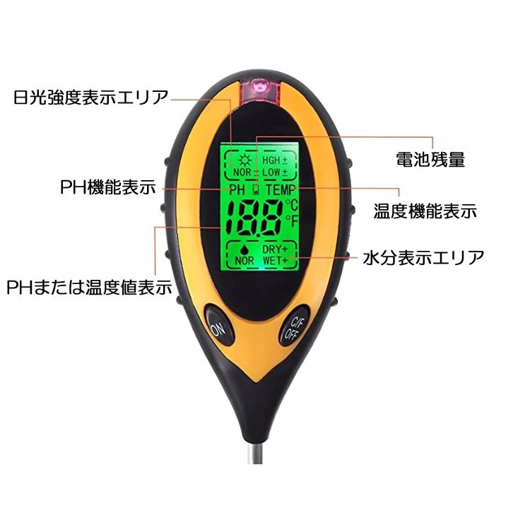PH値と温度は数値で表示され、明るさと水分は文字で表示されます