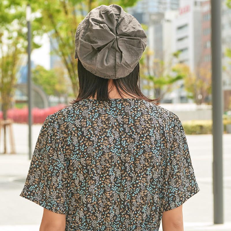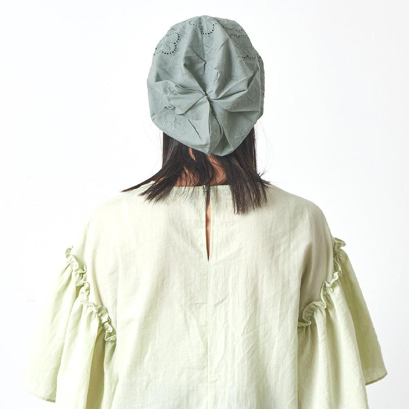 ゆったりシルエットが気になる襟足をカバーしてくれ、後頭部にはゴムが入っているのでフィットしてかぶれます。