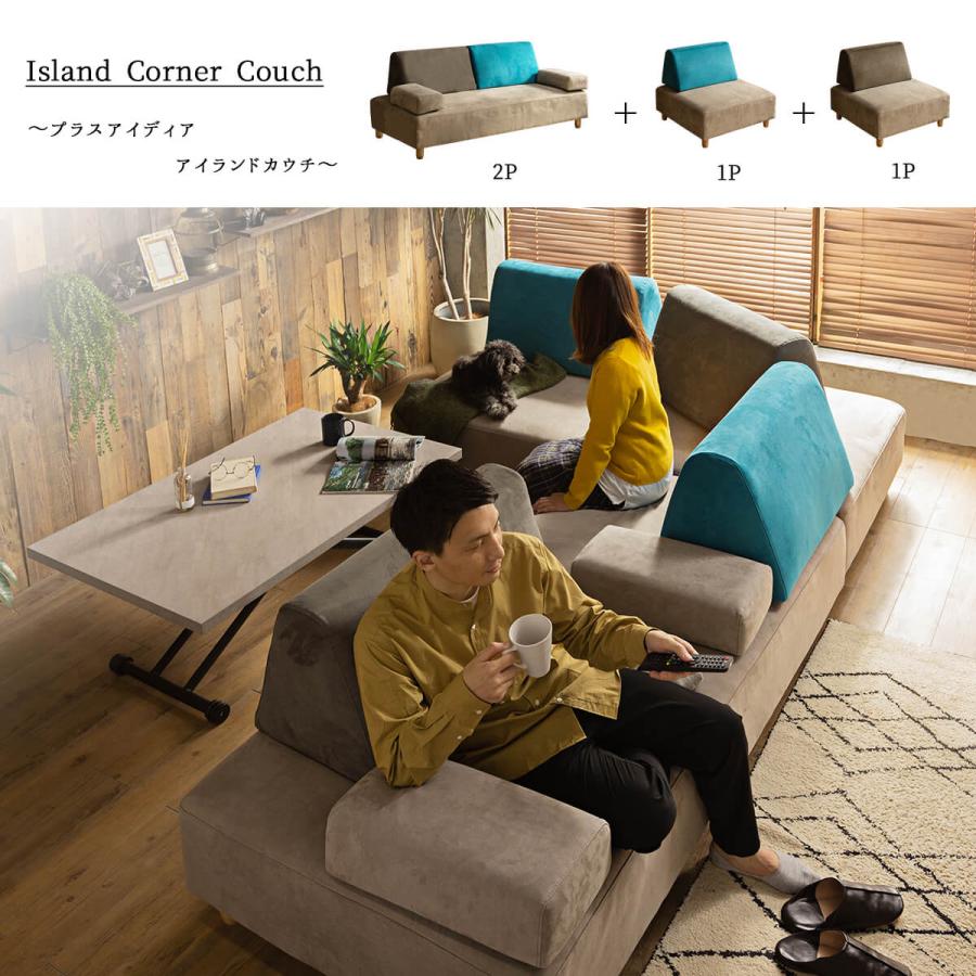 ソファ ソファー 四人掛け アイランドソファ カウチソファ コーナー グレー ブルー ダイニングソファ 大人数 ソファベッド 大型 リビングダイニング 送料無料 開墾設置 ブルー グレー・サイズ 幅297×奥行き198×高さ85cm 座面40cm・素材/材質 ファブリック(撥水加工)、Sバネ、ウェービングベルト、ウレタンフォーム、天然木脚・特徴 リビングにもダイニングソファーでも主役になれるソファ。背もたれの向きと位置を自由自在に組み換えできます。