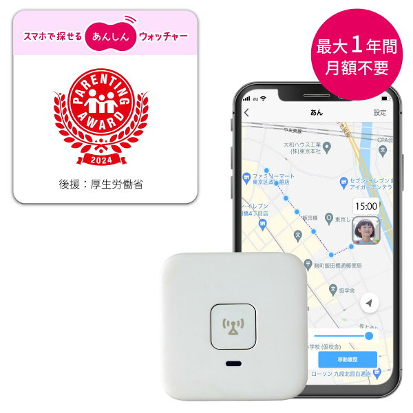 あんしんウォッチャー 最大1年間月額無料 子供 高齢者 モノ 見守り GPS au以外も使える 現在地や移動履歴ををスマホで確認 小型 小学生 通学をみまもり