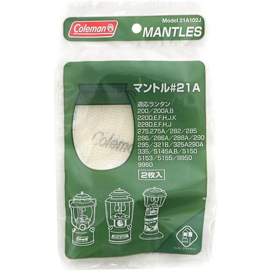 ●Coleman(コールマン) ■21A型マントル ■2枚入 ※予告なしでパッケージなどのデザインや商品のカラー等が変更になる場合があります