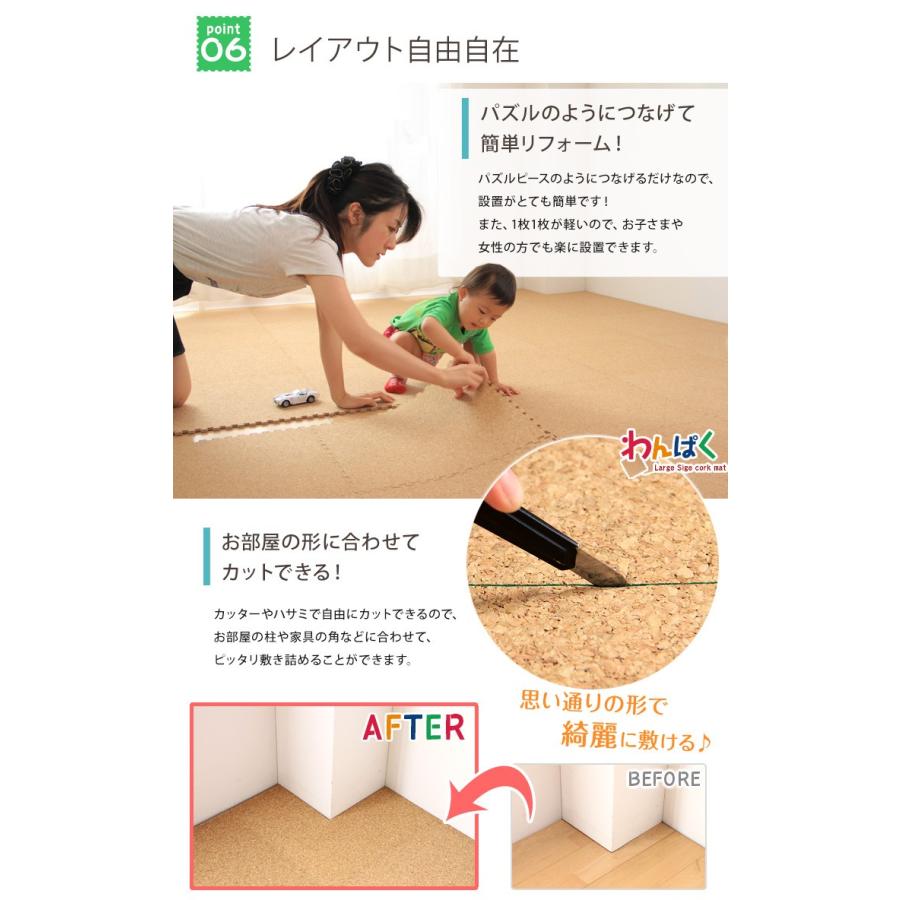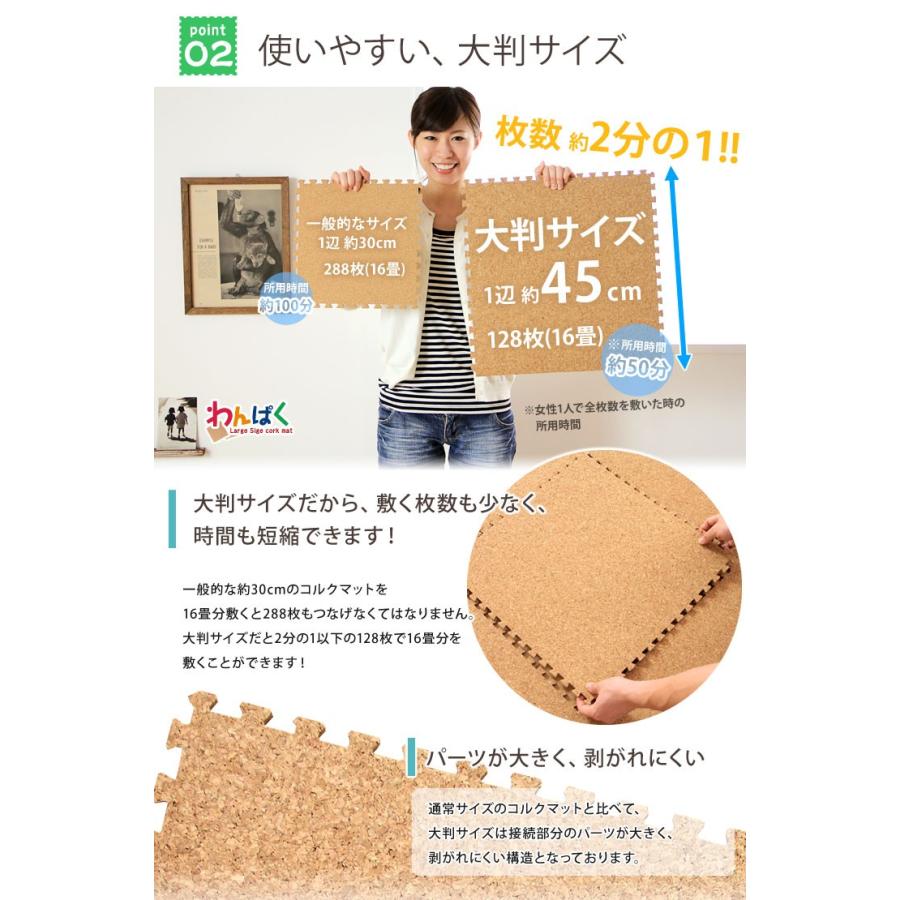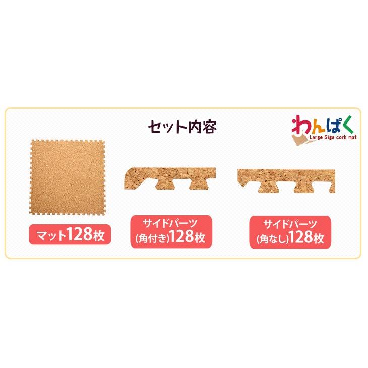 コルクマット ジョイントマット 大判 45cm 厚手 128枚 16畳 フローリングコルクマット 洗える サイドパーツ付き フロアマット クッションマット 床暖房対応