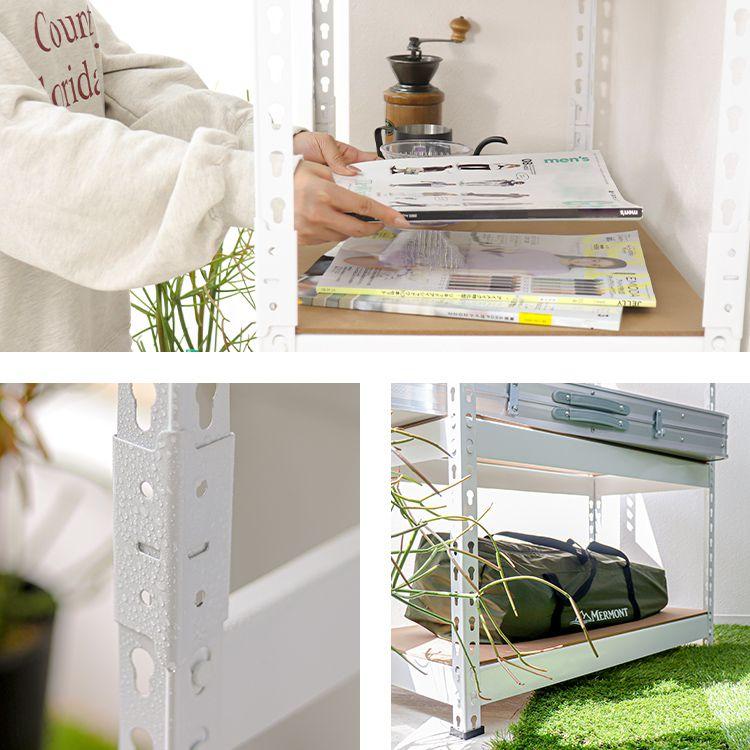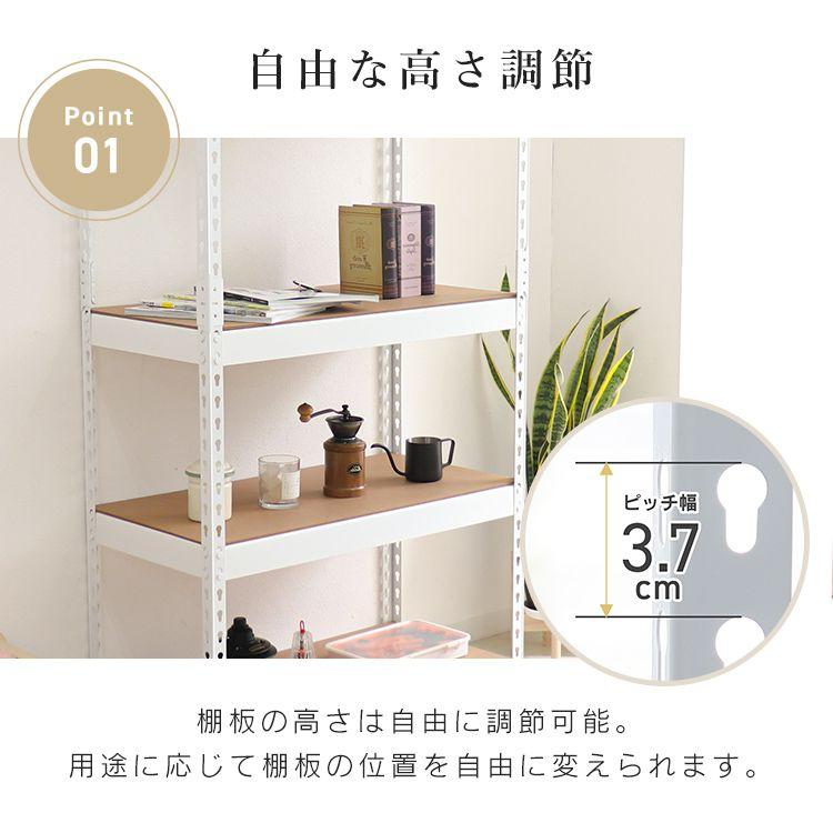 棚板はパイン材よりも曲がりや反りが出にくく、軽量で丈夫なMDFボード!軽量で乾燥や湿気による変形が少ないのが特徴です。