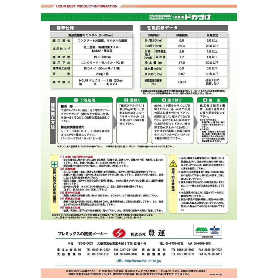 〔特 長〕1)高い強度を有しており、建築・土木コンクリート構造物の欠損部補修や断面修復に適しています。2)作業性が良く、特に厚付け性に優れ、厚さ60mmまでの部分補修が可能です。3)初期膨張収縮率は収縮しないので厚付けしてもヤセはほとんどありません。4)粉末樹脂を混入した一材化製品ですので、水練りだけで耐久性に優れたポリマーセメントモルタルが得られます。 〔適用下地〕コンクリート、モルタル、PC板※下地材としての強度があることを確認して下さい。