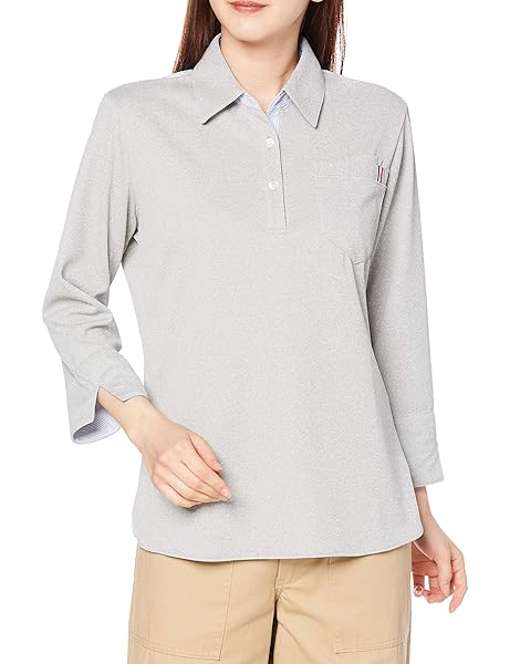 [キラク] レディスストライプ切替介護用7分袖ニットシャツ CR146 レディース