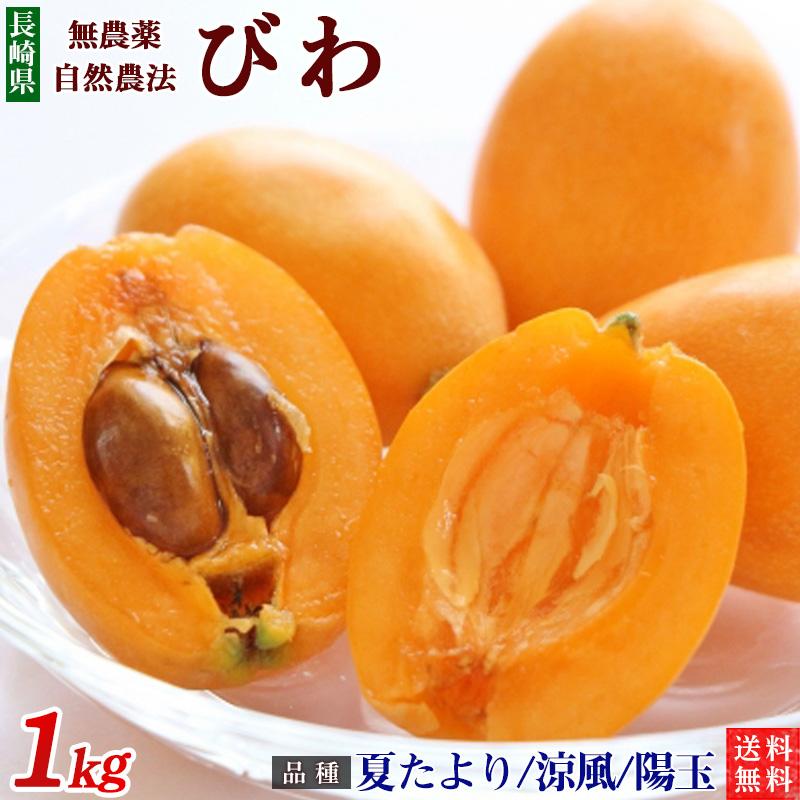 長崎県産 農薬・化学肥料不使用 びわ(夏たより・涼風・陽玉のいずれか)1kg【秀品】自然農法【送料無料】無農薬・クール便