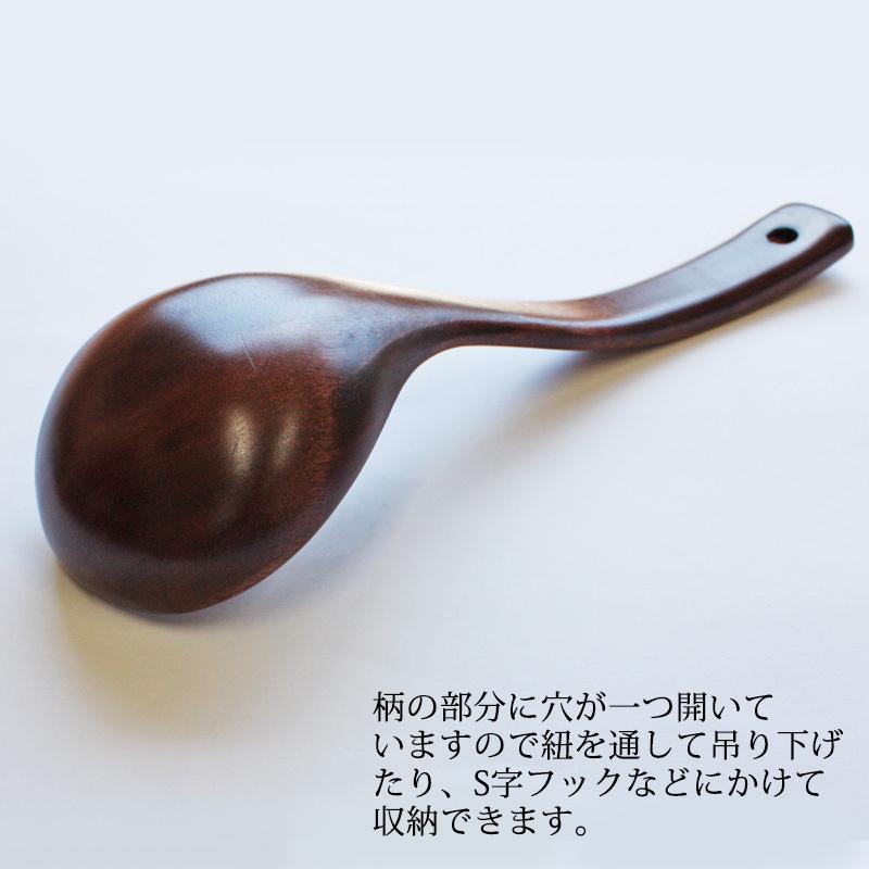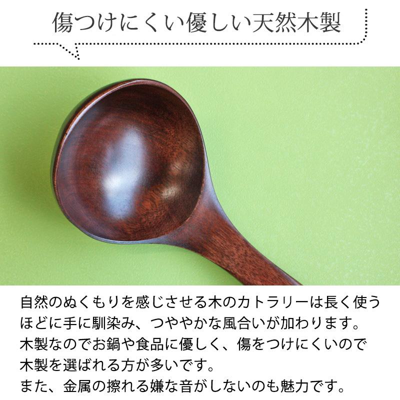 自然の温かみが感じられる、『天然木製』のお玉です。使い込むほどに味が出るから、ずっと大切に使いたいですね♪お鍋の底が傷つかず、金属がこすれ合う嫌な音もでません。ル・クルーゼのお鍋にピッタリです。欅(けやき)の木の特徴は、木目が大変美しく、そしてとても堅い事です。お玉の腹で、ご家庭での焼き飯用などの冷ご飯をつぶすのに優れています。(料理人談)