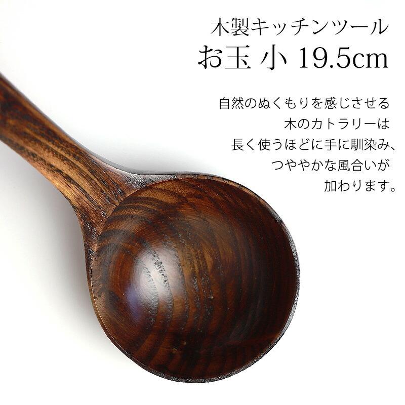 自然の温かみが感じられる、『天然木製』のお玉の小サイズです。