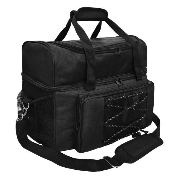 [ボウリング用品をすべて収納]: このバッグは.ボウリング用品をすべて持ち運ぶのに十分な大きさです.メインコンパートメントにはボウリングボール2個を簡単に収納でき.ボトル.靴下.財布.鍵などのアイテムを整理するためのポケットも付いています.
