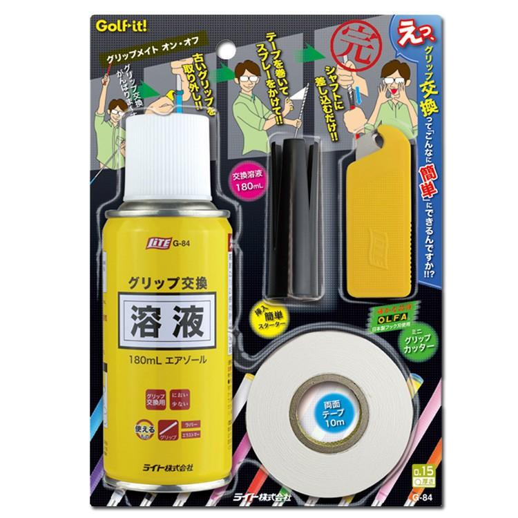 LITE/ライト グリップメイト オン・オフ G-84 グリップ交換キット 交換用液180mL 両面テープ10m グリップカッター スターター ゴルフクラブ グリップ メンテナンス用品 [取り寄せ商品]
