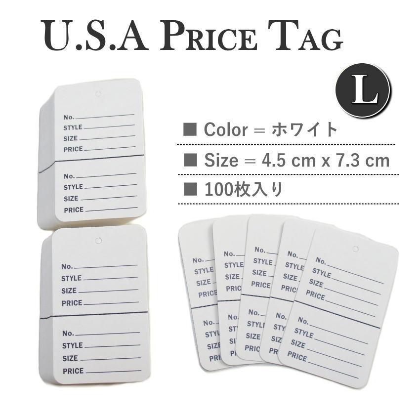 米国プライスタグ Lサイズ ホワイト 白 1色 100枚入り 値札 下げ札 英字アメリカメーカー製 切り取りミシン目ライン入り スプリット式 シンプル使いやすい プライスカード こだわりの古着屋さん 雑貨屋さん定番御用達